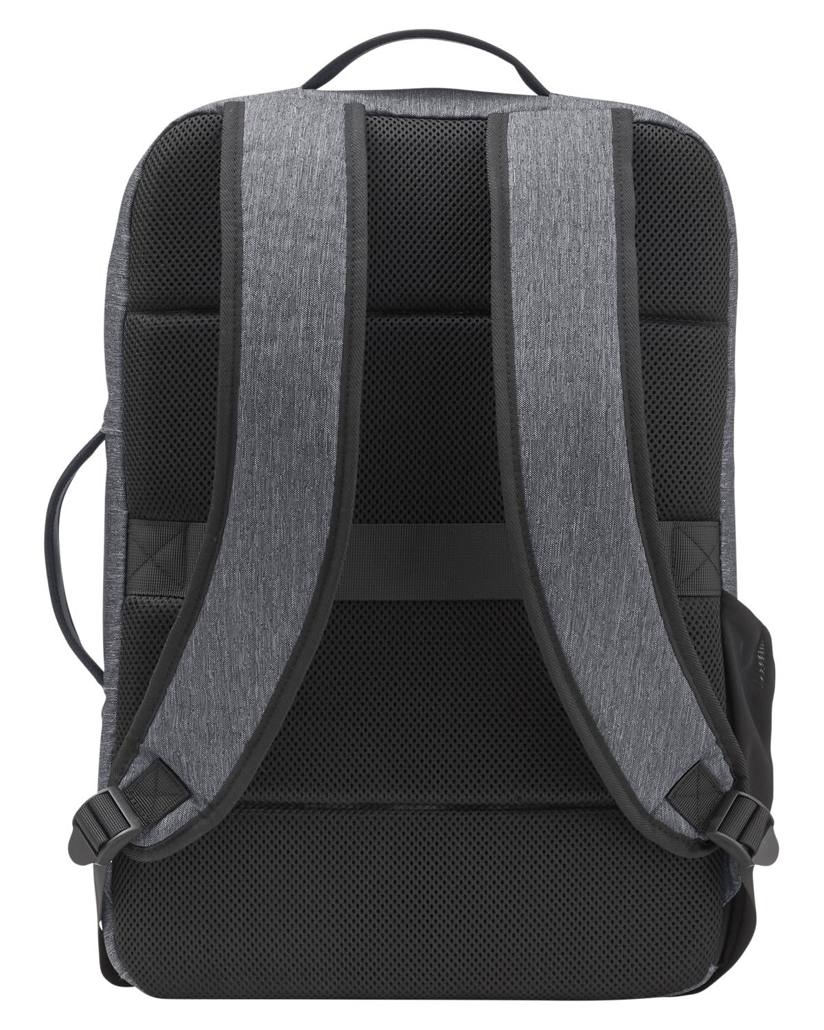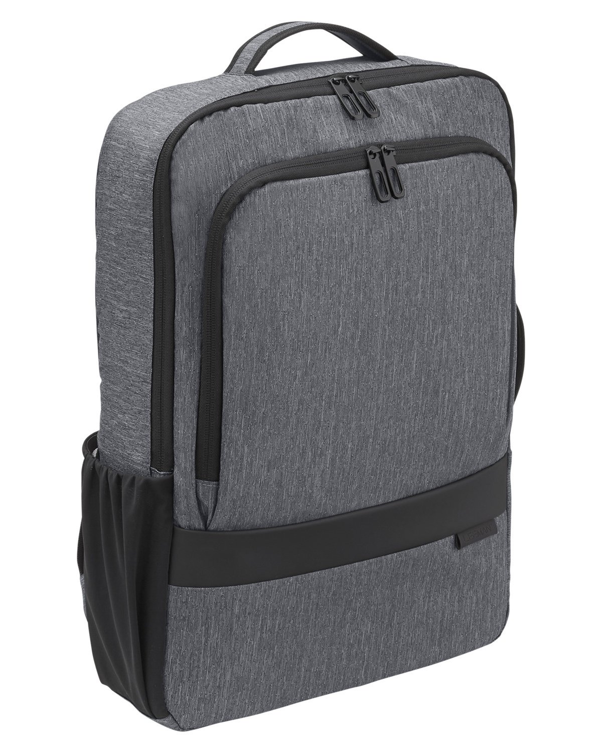 300D Recycled 2-tone Polyester bag. Sleek and versatile backpack converts to briefcase. Laptop pocket inside main compartment, fits most 15″ laptops. Large front zippered pocket with organization including RFID pocket. Trolley pass and side mesh water bottle pocket. Padded shoulder straps and top carry handle. Hand wash with cold water. Recommended weight tolerance: 15 lbs. 12.2000″ W x 17.7000″ H x 3.9000″ D